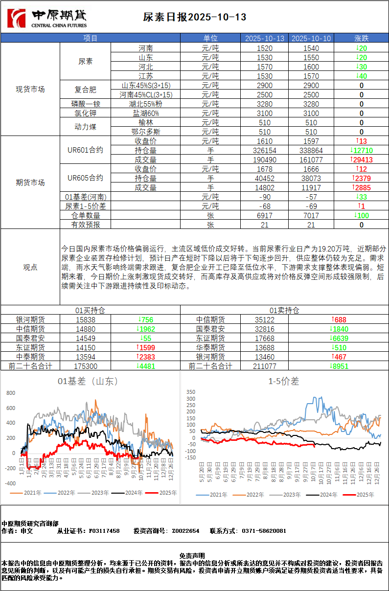 尿素日报20251013