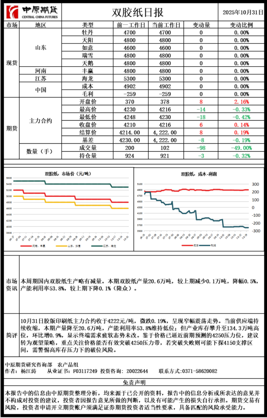 双胶纸日报20251031