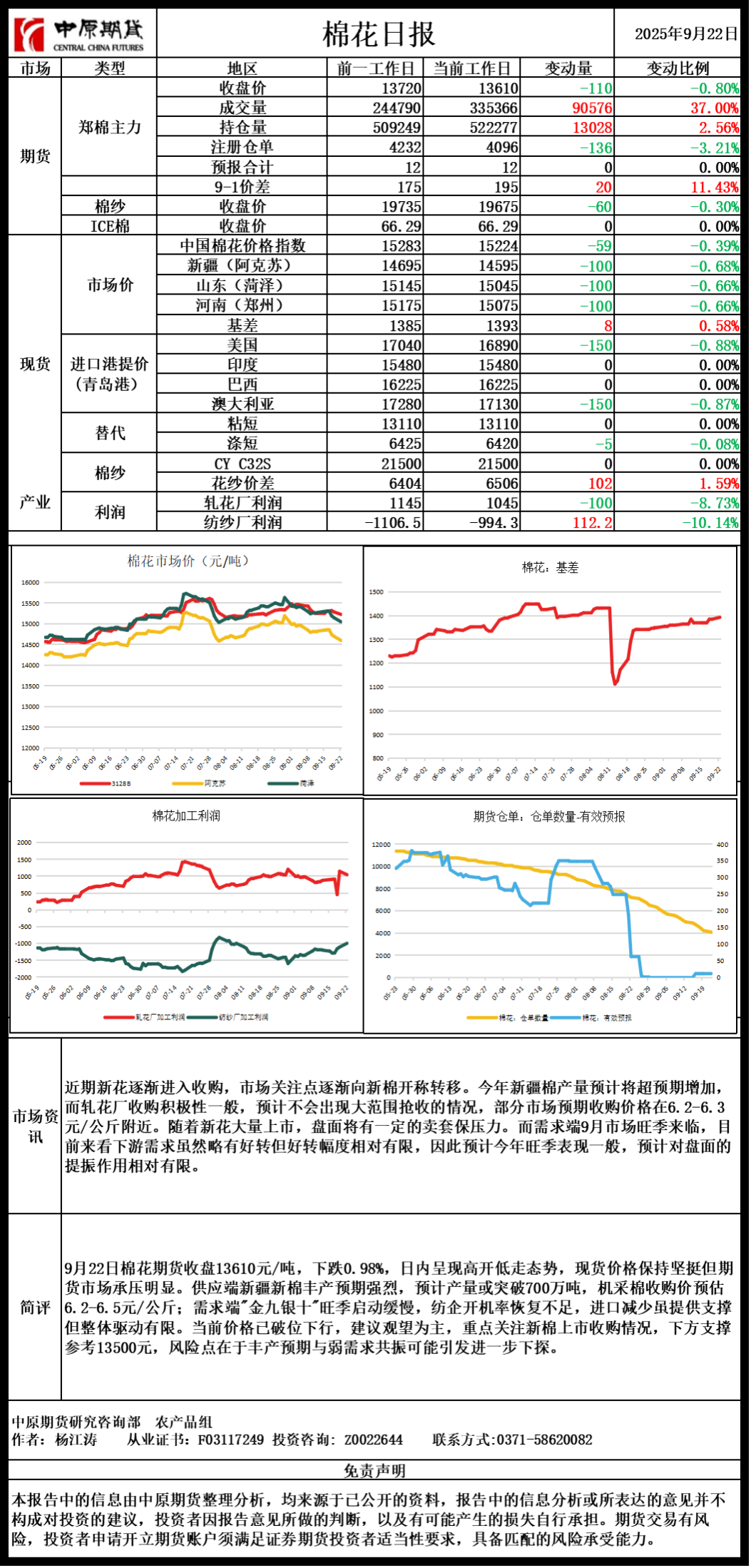 棉花日报20250922