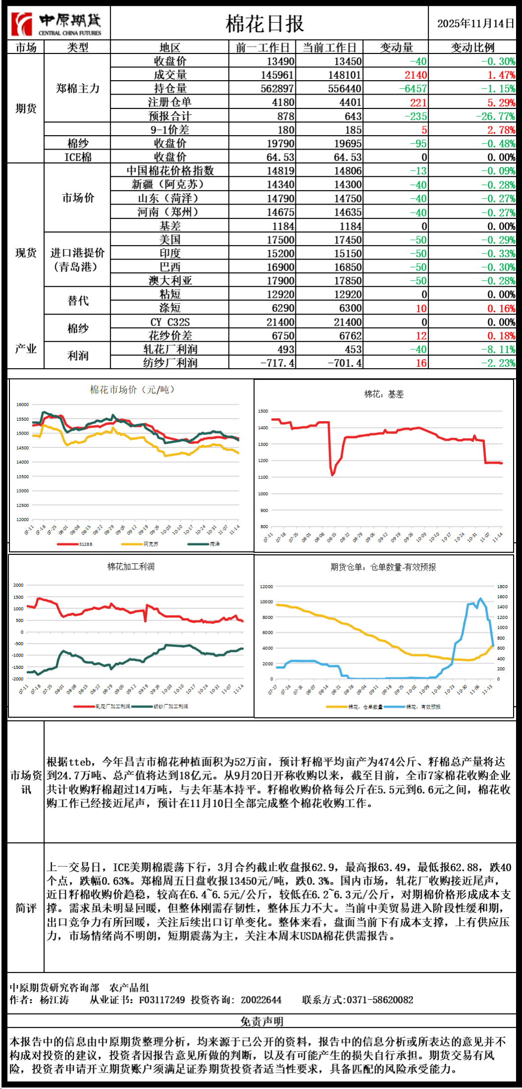 棉花日报20251114