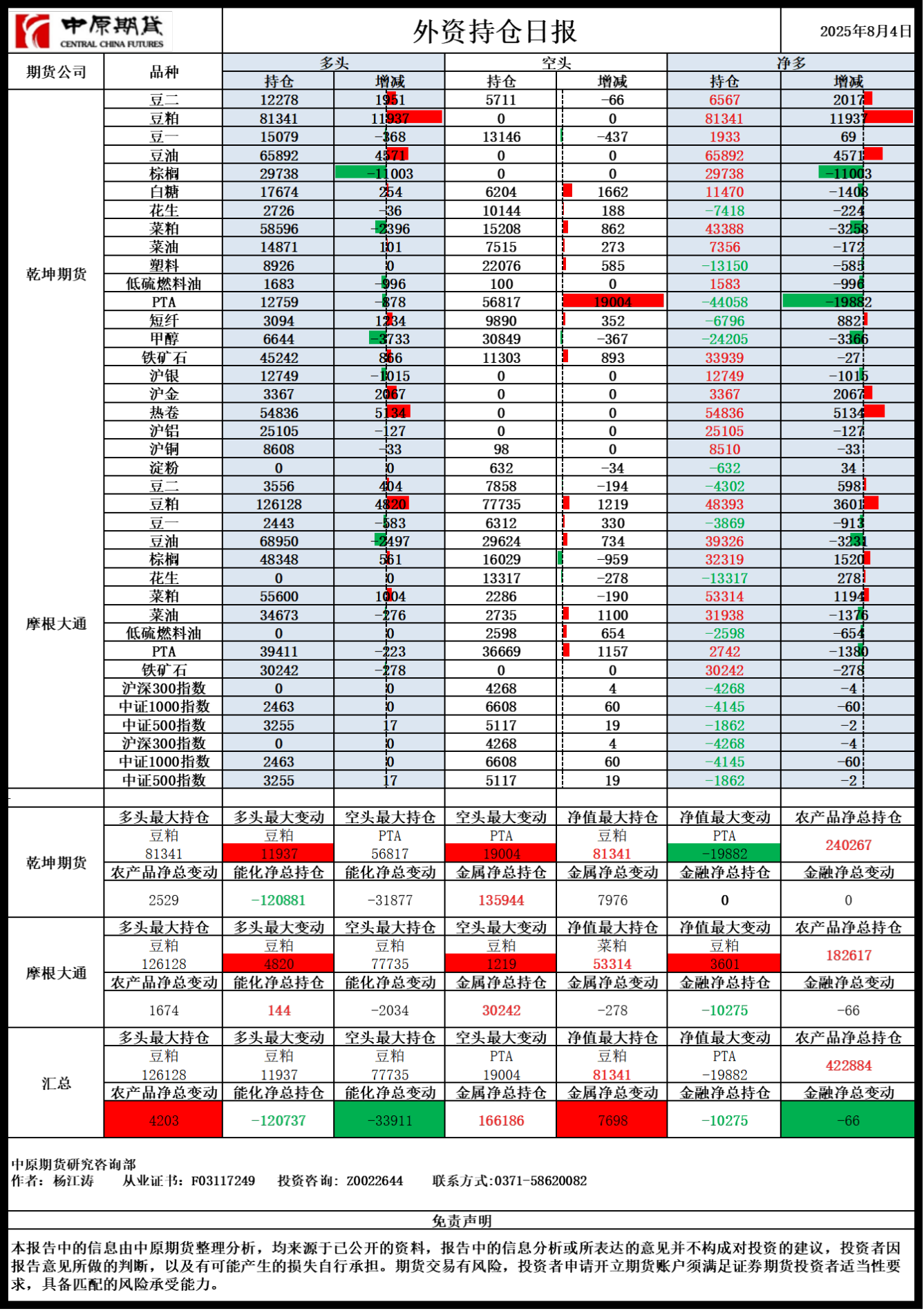 外资持仓日报20250804