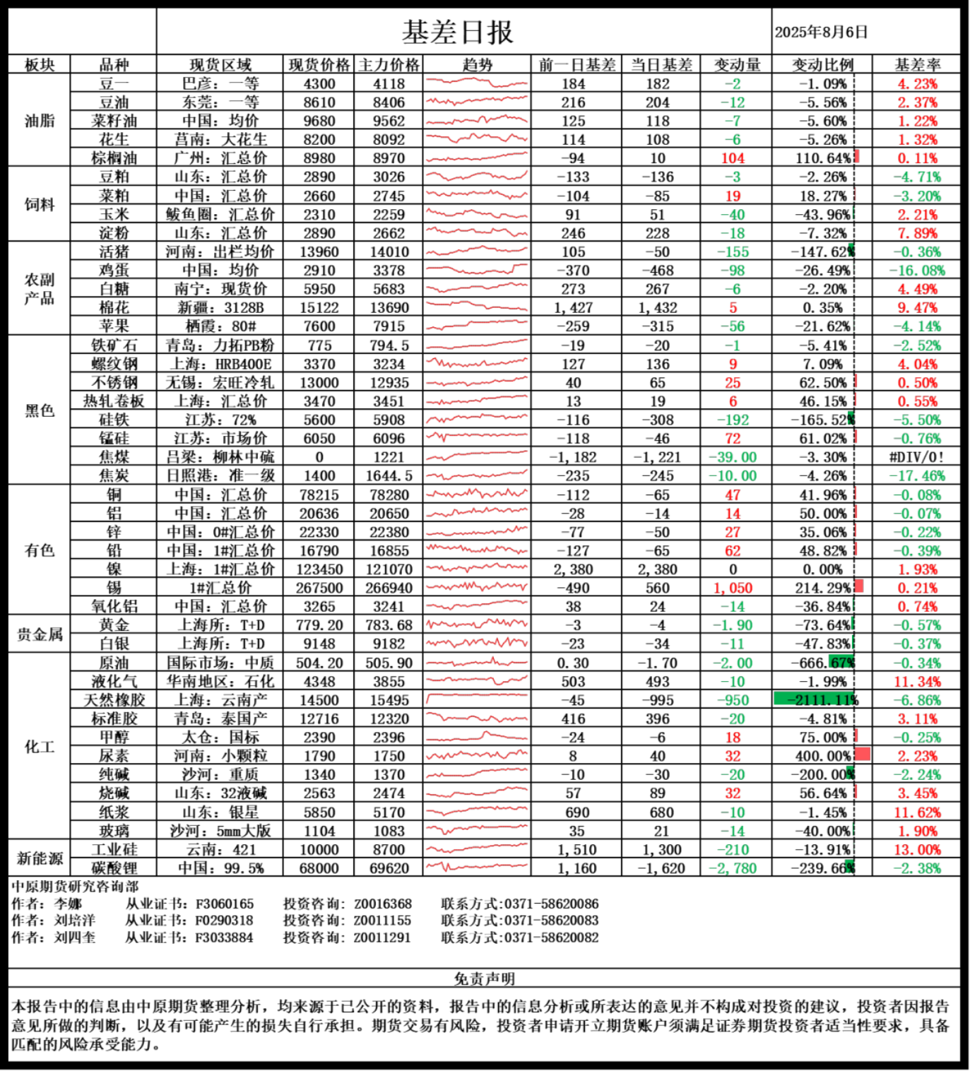 基差日报20250806