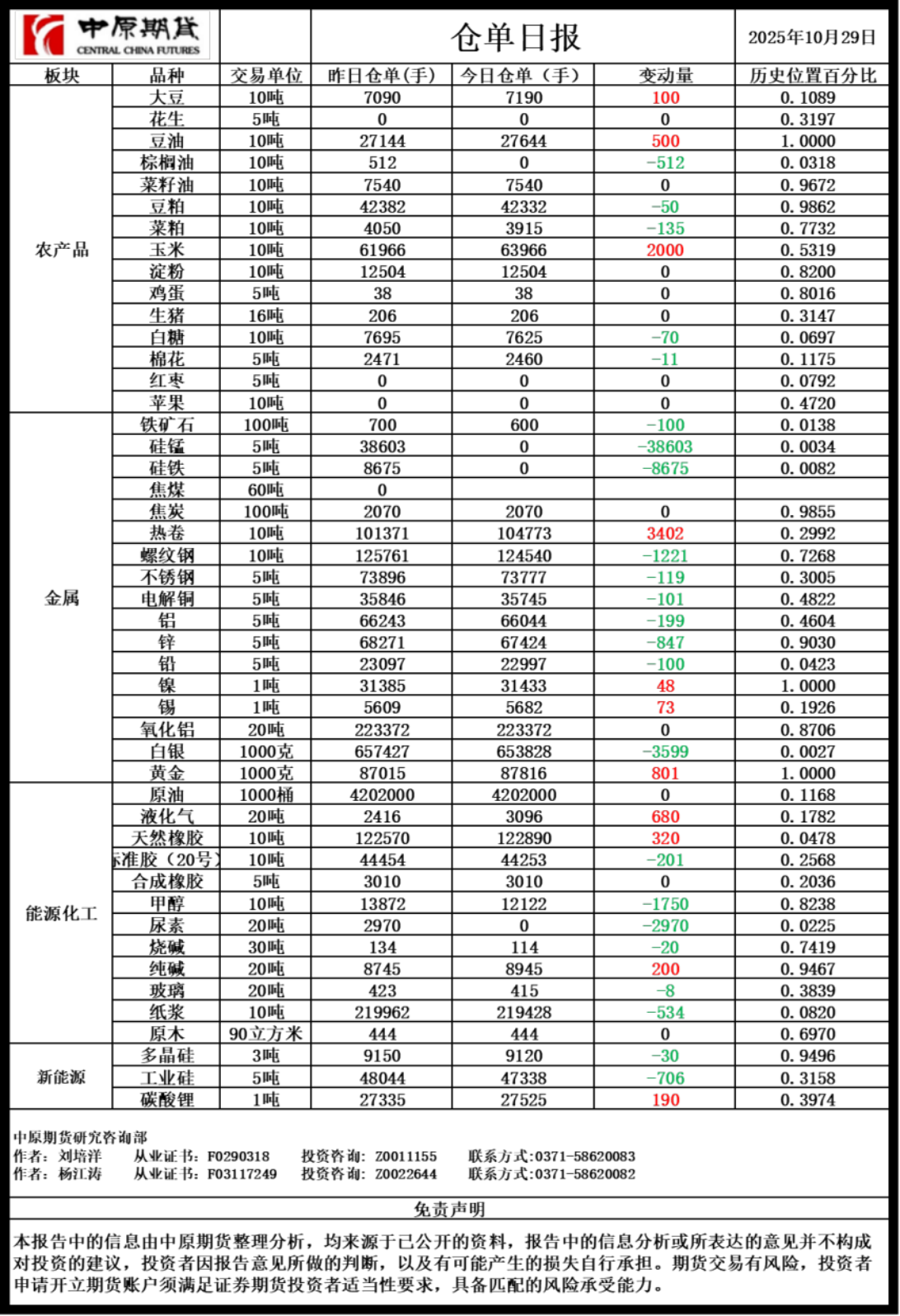 仓单日报20251029
