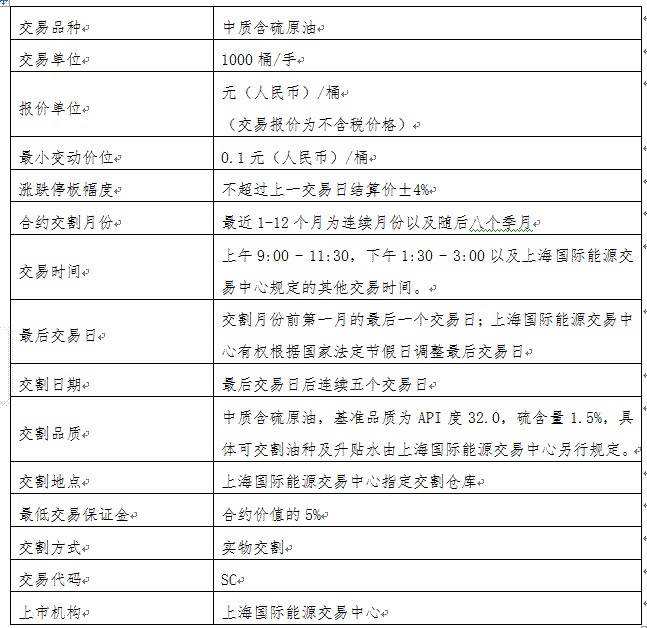 首批上市交易原油期货合约为SC1809、SC1810、SC1811、SC1812、SC1901、SC1902、SC1903、